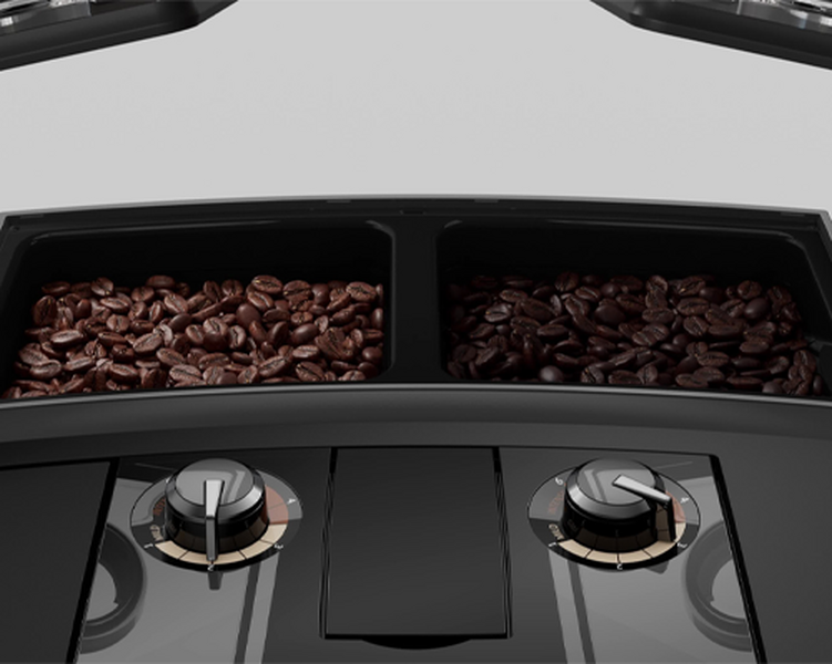 Le double bac à grains permet de conserver deux types de grains distincts, par exemple un torréfaction foncée et un décaféiné, et garantit qu’ils restent préservés de l’humidité et mélangés qu’à votre demande. La conservation est facilitée par des couvercles hermétiques sur les bacs, et la possibilité de basculer rapidement d’une variété à l’autre sans éclatement des arômes.