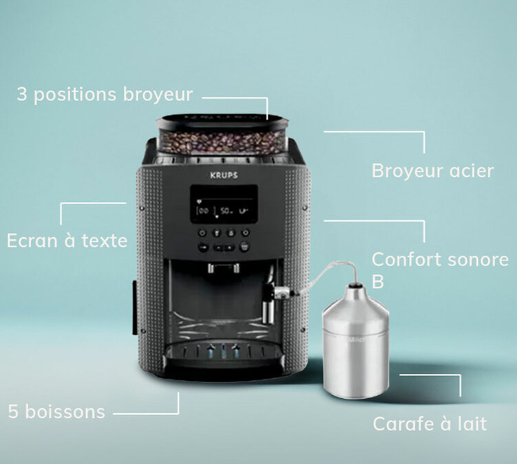 Cette machine à café à grain Krups Essentiel Latte est une machine à café de qualité fabriquée en France.