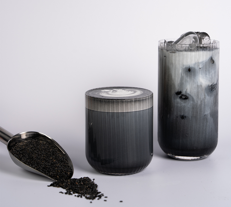 Découvrez le latte au sésame noir de La main noire