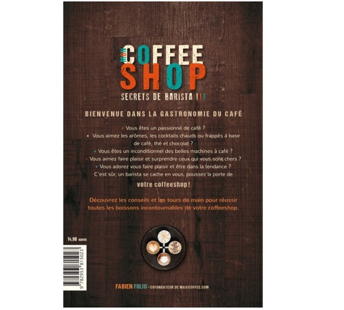 "Mon Coffee-Shop - Secrets de Barista" vous fera découvrir au fil des pages les conseils et les tours de main pour réussir toutes les boissons incontournables de votre Coffee-Shop. Fabien Folio vous livre ses astuces de pro pour bien choisir son café , réaliser un expresso parfait ou encore obtenir une mousse de lait à tomber !