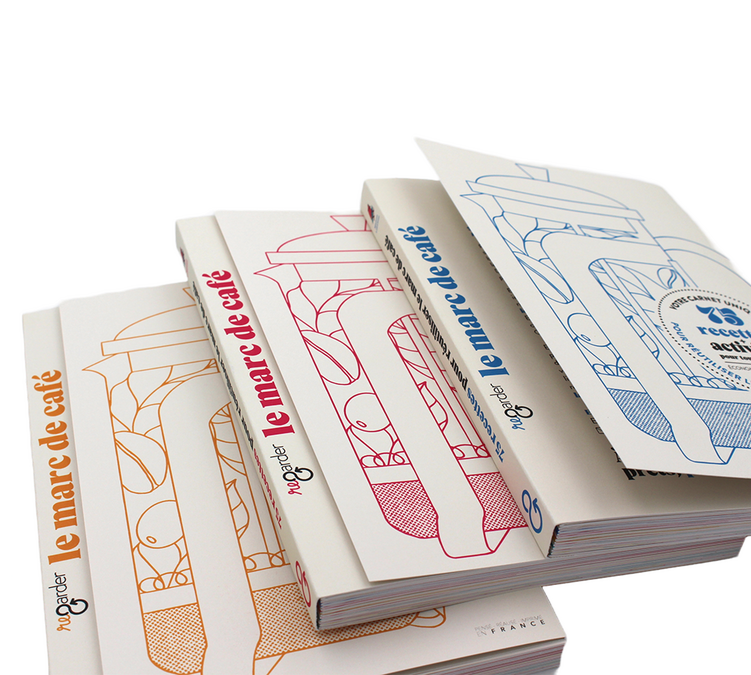 Chaque carnet est unique, numéroté, avec une couverture individuelle. C'est un format A5 de 144 pages, broché avec deux rabats et relié à la suisse avec un fil de couleur. Chaque libre est imprimé sur papier offset PEFC et utilise des encres végétales.