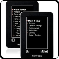 | Le don de la convivialitéNextage est l’une des machines les plus faciles à programmer du marché. Son large écran et sa structure arborescente font de la programmation un vrai jeu d’enfant. Grâce à la technologie de programmation tactile, le temps de sélection est réduit au strict minimum, vu qu’il est possible de cliquer directement sur la zone concernée. La personnalisation des boissons est tout aussi rapide et aisée. Les paramètres peuvent être directement modifiés et testés, d’une simple pression sur un bouton à l’écran. Si les résultats n’apportent pas une entière satisfaction, il suffit d’adapter les paramètres et une nouvelle boisson sera distribuée après deux clics à peine. Le menu de sélection est également personnalisable : quelques clics suffisent pour modifier les icônes et noms associés aux boissons. Un port USB est présent pour (télé)charger les paramètres et actualiser le logiciel. |