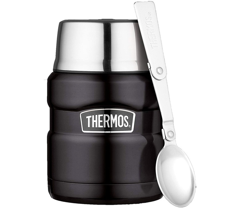 Découvrez la Lunch box isotherme longue durée en inox noir mat de la gamme Thermos King. Contenance 47cl. Idéal pour vos déjeuners. 9h au chaud / 14h au froid. Acier inoxydable double paroi sous-vide. Garanti sans BPA. Couvercle 100% hermétique, transportable dans votre sac. Livré avec une cuillère pliable.