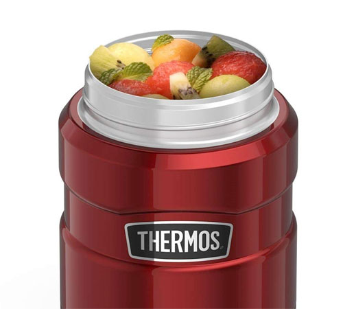 Découvrez la Lunch box isotherme longue durée en inox rouge de la gamme Thermos King. Grande contenance 71 cl. Idéal pour vos déjeuners. 14h au chaud / 24h au froid. Acier inoxydable double paroi sous-vide. Garanti sans BPA. Couvercle 100% hermétique, transportable dans votre sac.