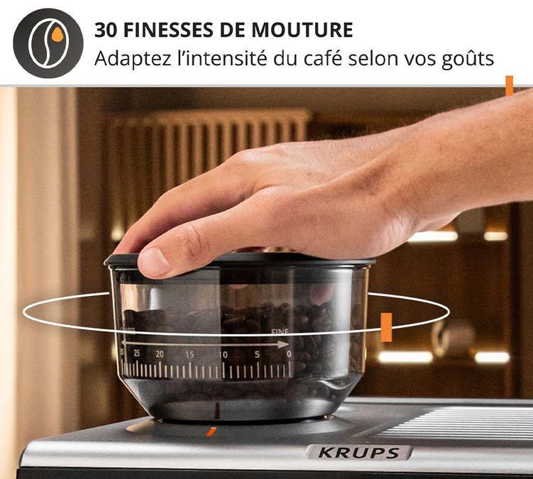 Devenez votre propre barista avec la machine à café Krups Precision. Son moulin intégré propose 30 réglages de précision pour s'adapter à toutes vos envies. Créez facilement vos propres recettes lactées grâce à sa buse vapeur et son écran simple d'utilisation.