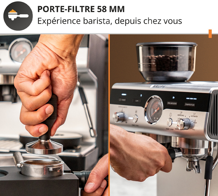 L’interface intuitive de la Krups Precision simplifie chaque étape de votre préparation. Ajustez facilement la quantité de mouture et sélectionnez une extraction pour une ou deux tasses en toute simplicité. Le manomètre intégré en façade vous offre un contrôle précis sur l'extraction, vous permettant d'affiner chaque dégustation pour un résultat toujours à la hauteur de vos attentes.