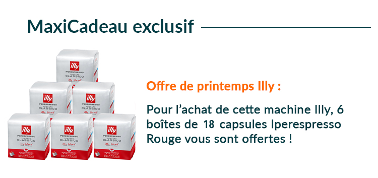 Offre exceptionnelle : pour l'achat de cette machine à capsules Illy Y3.2 rouge nous vous offrons 108 capsules Iperespresso.