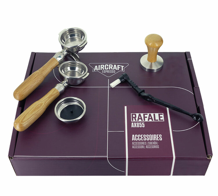 Accessoires : Porte-filtre 2 becs 58 mm en inox finition bois, porte-filtre bottomless inox finition bois 1 filtre simple une tasse, 2 filtres simples deux tasses, un tamper en inox et un filtre aveugle en silicone. Vous pouvez accompagner cette machine à café évolutive avec nos accessoires barista, comme les pro.