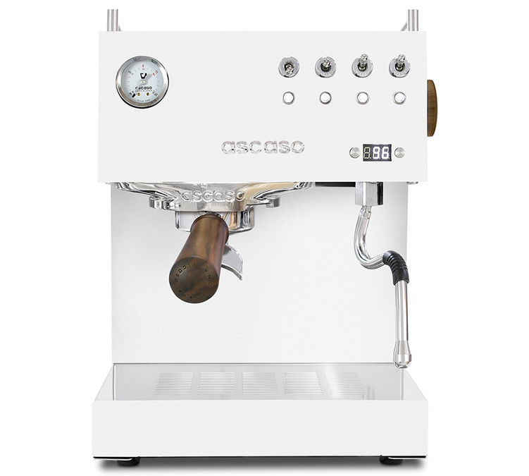 Ascaso Steel Uno PID blanche avec finition bois est une machine expresso dédiée au plaisir, que celui-ci soit visuel ou gustatif.