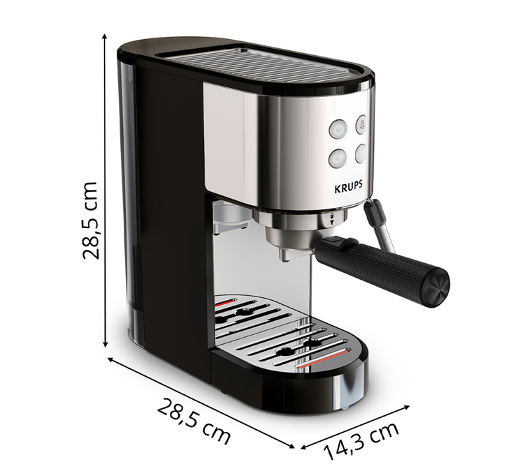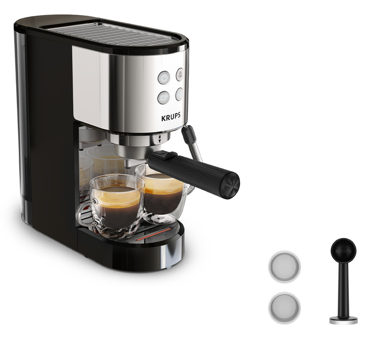 La KRUPS Virtuoso Essential est une machine expresso accessible, pensée pour les débutants qui souhaitent apprendre les bases de l’espresso avec du café moulu.