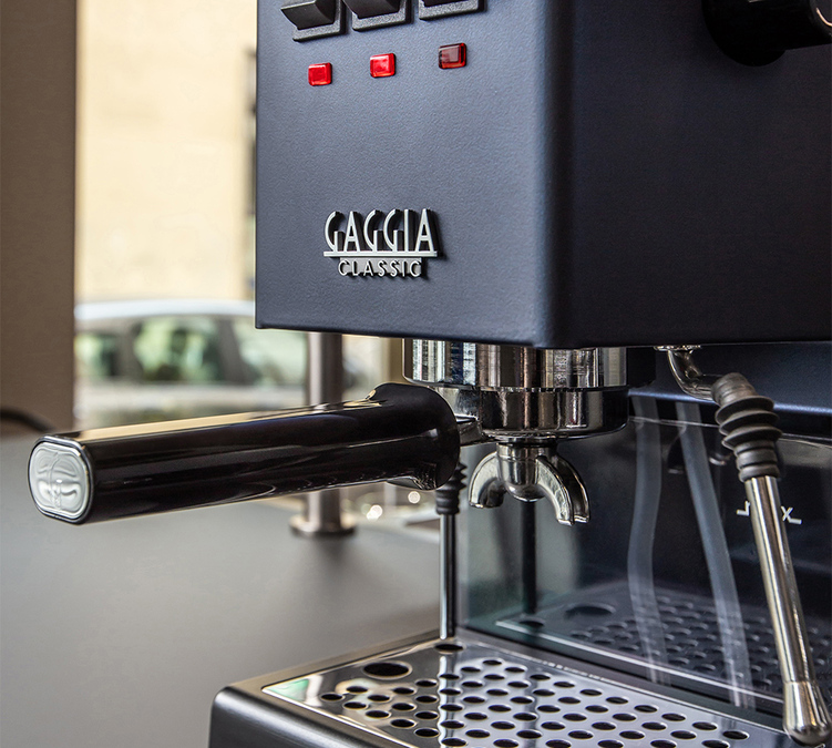 La Gaggia Classic E24 se distingue par sa simplicité d’utilisation, avec un bouton dédié à l’extraction du café et un autre pour activer la vapeur.