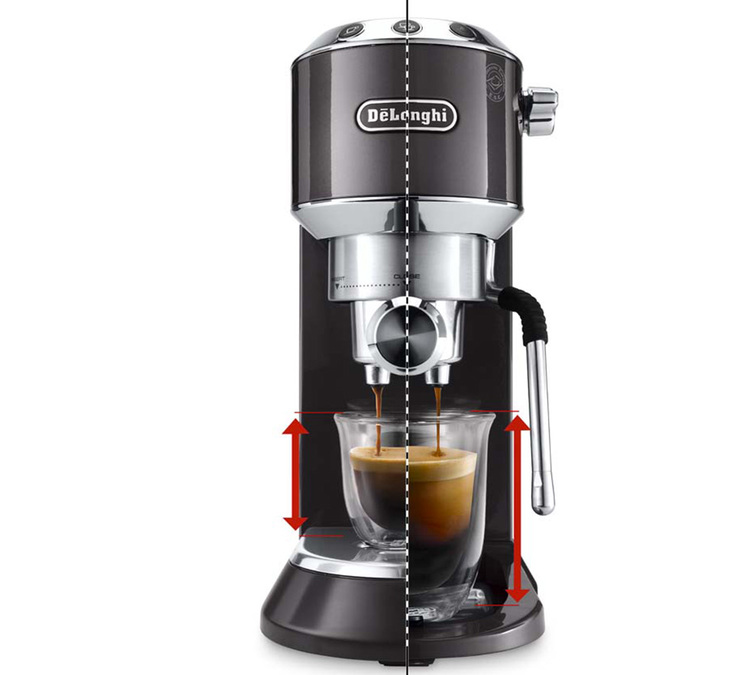 La Dedica Arte a également été pensée pour s'adapter à vos tasses, avec un plateau modulable en deux hauteurs.