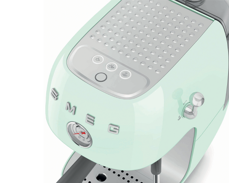 La Smeg ECF03 se distingue par une interface simple à 4 boutons et un manomètre intégré qui guide la qualité d’extraction en temps réel.