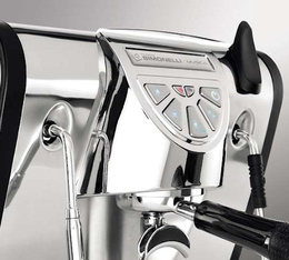 J'aime vraiment cette Musica de Nuova Simonelli : Machine de très haute qualité reprenant tous les arguments de l'Oscar avec en plus une carrosserie inox du plus bel effet, une buse vapeur (hyper puissante !) et eau chaude séparés, manomètre, un réglage volumetrique et, pour couronner le tout, elle est équipée d'un pressostat Sirai assurant précision et fiabilité accrue? Bref un condensé de technologie sublimé par un design du plus bel effet. Bravo Simonelli !