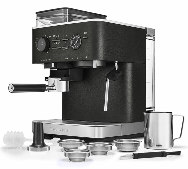 Pour sublimer vos moments café, la KitchenAid semi-automatique en inox est accompagné d'une panoplie d'accessoires de qualité professionnelle.
