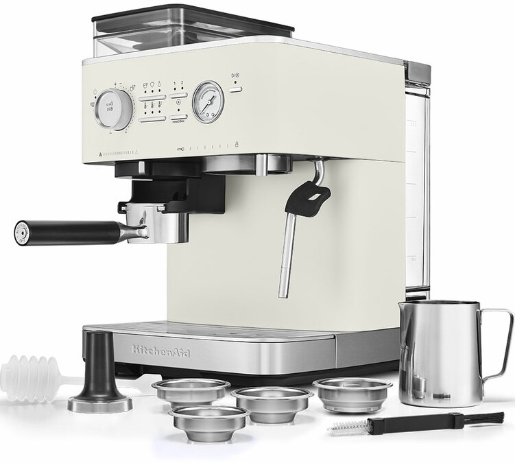 Pour une meilleure expérience café, la KitchenAid semi-automatique en inox, est livrée avec des accessoires indispensables.