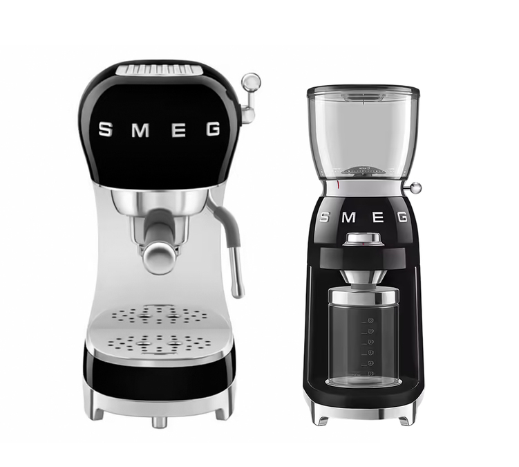 Redécouvrez le plaisir de l'espresso à domicile avec le pack SMEG ECF02BLEU et CGF11BLEU. Ce duo, où le style rétro des années 50 rencontre la performance moderne, transformera votre routine café. Profitez d'une extraction parfaite grâce à la machine, et d'une mouture sur mesure grâce au moulin. Un ensemble pensé pour les passionnés d'espresso, offrant une expérience complète, élégante et intuitive. Livraison gratuite. Garantie 2 ans.