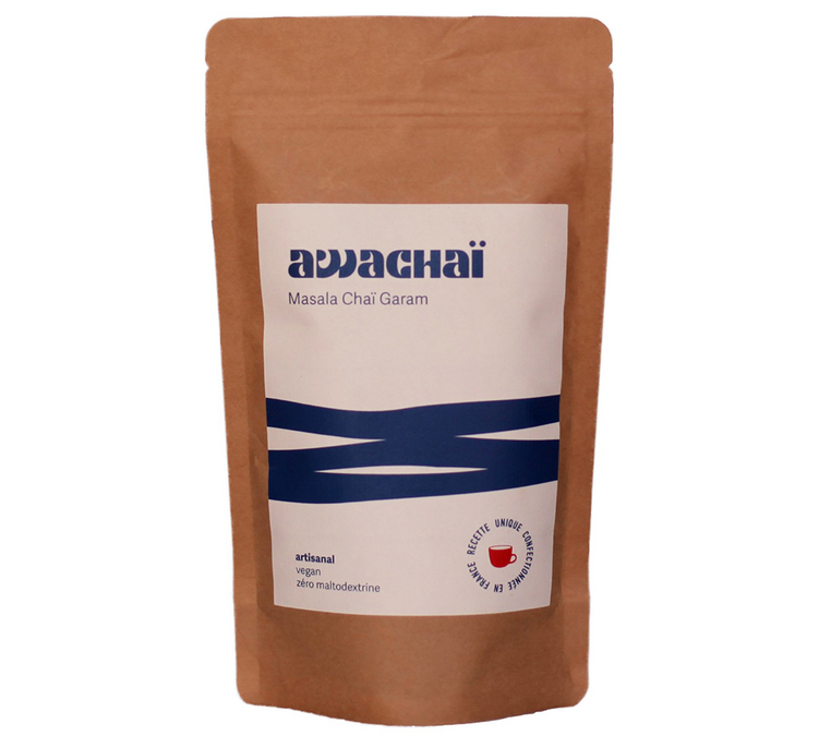 Le Masala Chaï Garam d'Awachaï est une boisson instantanée qu'on peut déguster chaude, ou comme boisson frappée. Elle comprend un mélange d'épices, de thé noir, et une pointe de sucre de canne qui équilibre l'ensemble et la transforme en petit délice gustatif.