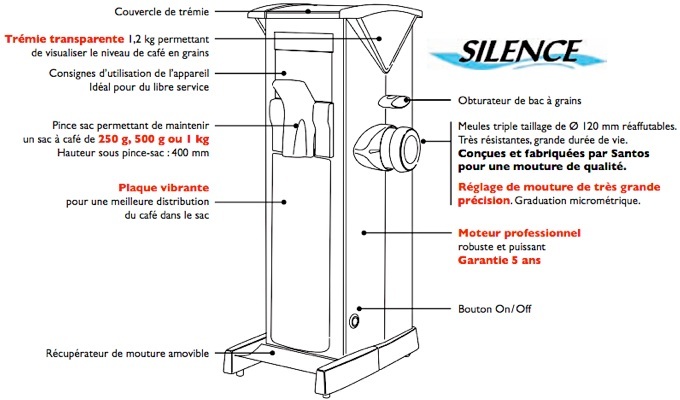 Santos est une société Française créée en 1954 par Mr André Fouquet. C'est elle qui a vendu les premiers moulins à café et râpes à fromage professionnels pour les épiceries de quartier.