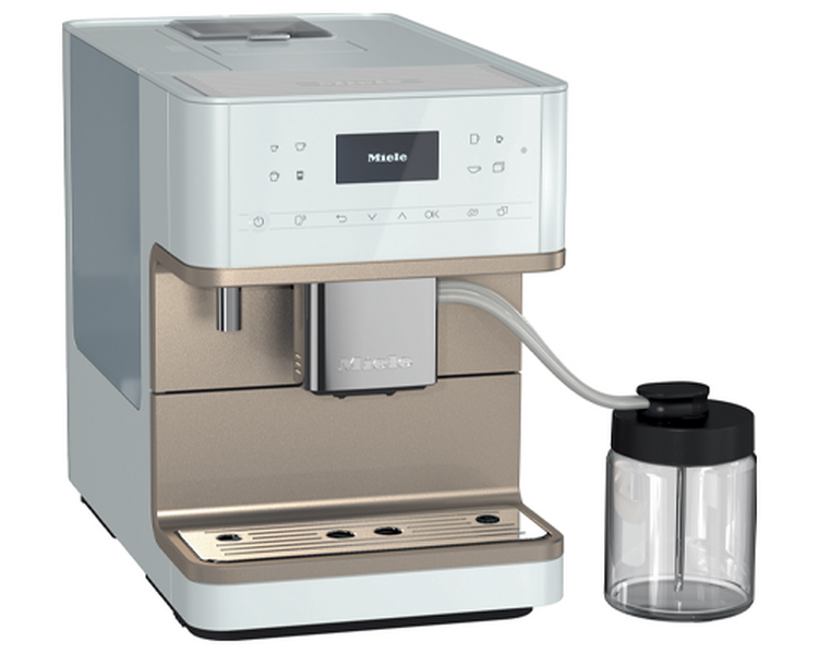 Visuellement, j'ai beaucoup aimé cette machine à café grain CM6360 BB de Miele. Elle a vraiment un design élégant et raffiné en cette version blanche et inox doré / irisé. Super simple d'utilisation, cet expresso broyeur permet de choisir vos boissons en accès direct depuis un panneau de contrôle tactile réactif. De plus son écran texte sur 4 lignes, facilite la prise en main. Elle propose un large choix de boissons pouvant satisfaire toutes les papilles même les plus exigeantes. Personnellement, j'ai adoré son système One Touch for Two pour déguster un savoureux latte macchiato à deux.