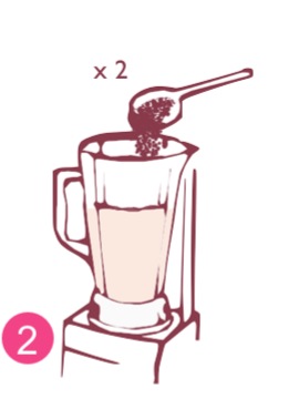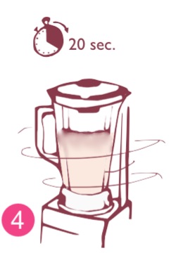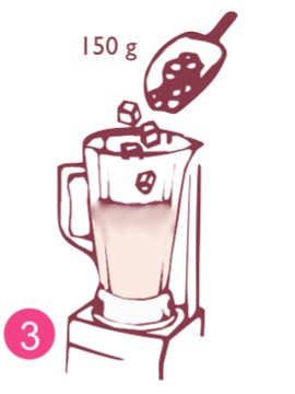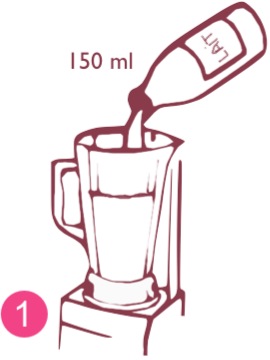 | Versez 150ml de Lait dans un Blender. | Ajoutez deux cuillères de la préparation Monbana de votre choix... | ...Puis 150g de glaçons. | Mixer le tout durant 20 secondes. |