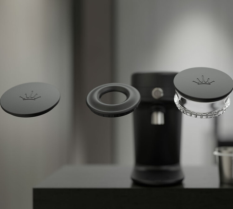 L’ergonomie est au cœur de l’expérience utilisateur : les couvercles interchangeables qui servent à adapter le moulin à différentes utilisations et volumes de café.