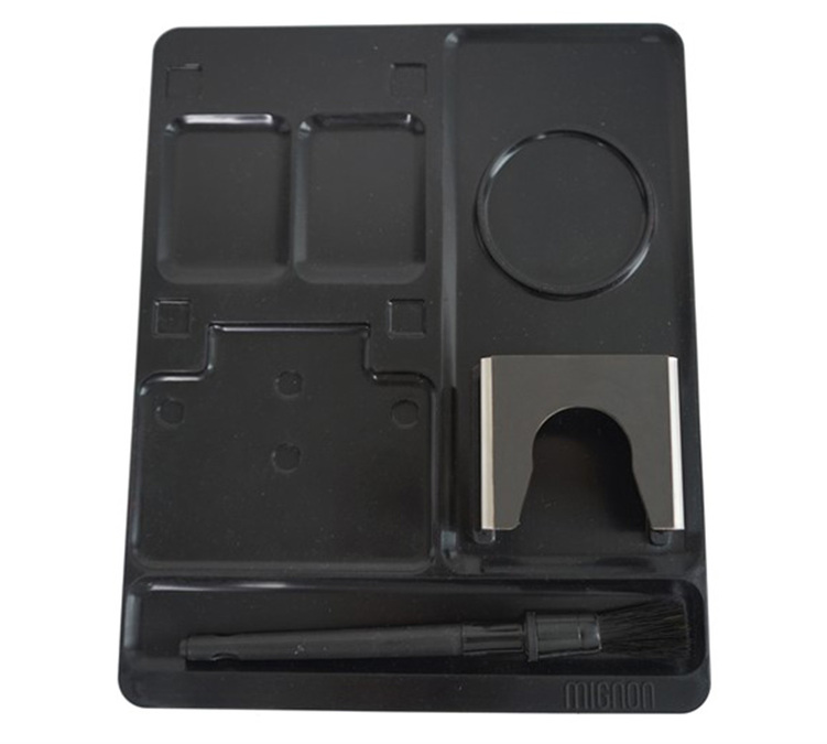 Le moulin Eureka Oro Mignon XL est aussi livré avec le kit de tassage Eureka Mignon qui contient un tapis en silicone (227mm x 280mm) fait pour cette gamme de moulins. Il accueillera votre moulin et vos accessoires de tassages pour garder votre espace café toujours propre. Un support universel pour votre porte-filtre et une brosse de nettoyage sont aussi fournis.
