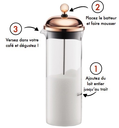 Découvrez ce mousseur à lait Chambord cuivré de la marque Bodum afin de vous permettre de réaliser une mousse de lait épaisse et crémeuse pour votre cappuccino, latté, chocolat chaud etc Retrouvez une boisson gourmande et réconfortante digne de votre enfance.