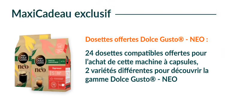 - Compatible avec : capsules Dolce Gusto Neo