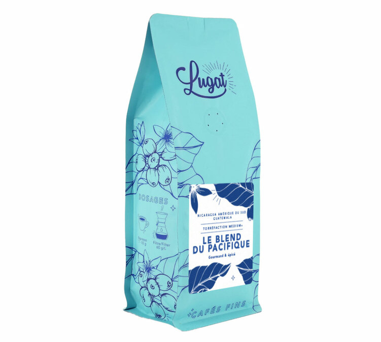 - Blend du Pacifique de Lugat : Un mélange d'Arabica du Nicaragua et de Colombie spécialement assemblé et torréfié par l'équipe de torréfaction des Lugat. Ce café, issu d'une torréfaction medium +, vous offrira un café suave et très gourmand avec des arômes de pâte à tartiner, d'amande et de chocolat. 250 g de café en grain.