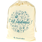 Discover this pretty linen-coloured cotton pouch decorated with MaxiCoffee illustrations. It will allow you to present your gift in an original way. Two cotton straps allow you to tighten the top of your bag.