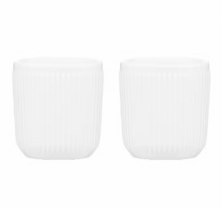 Cette cafetière se présente avec deux verres double paroi de la même collection, et possédant les mêmes caractéristiques : porcelaine blanche de première qualité, stries sur la surface, prise en main exceptionnelle.