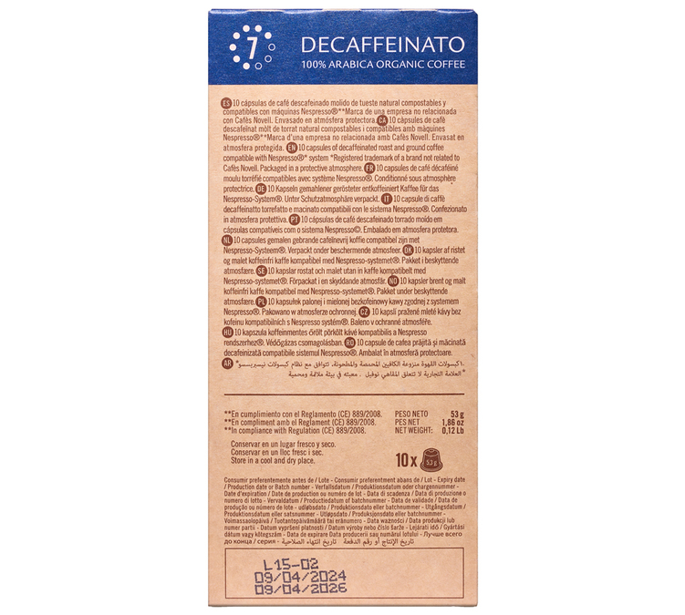 | 50 capsules compatibles Nespresso® Decaffeinato Bio – NOVELL | |