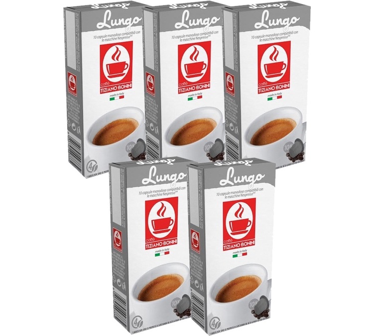 Découvrez ces capsules 100% Arabica Lungo compatibles avec toutes les machines Nespresso® . Ces capsules compatibles Nespresso® , fabriquées en Italie, vous offriront un café long aux notes de fruits secs et de céréales. Conditionné en 5 paquets de 10 capsules.