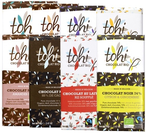 Fabriqués en Belgique, les chocolats Tohi sont issus d'ingrédients naturels de grande qualité contrôlés et certifiés FairTrade (Commerce Equitable) et issus de l'Agriculture Biologique.