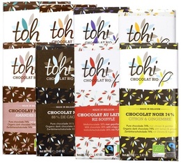 Pack découverte de 7 tablettes de chocolat du chocolatier belge Tohi. Ingrédients issus de l'Agriculture Biologique et du Commerce Equitable. Idéal pour découvrir les tablettes de chocolat Tohi. Conditionnement : 7x70 grammes.