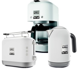 Découvrez la gamme complète du petit déjeuner kMix Blanche de Kenwood. Ce pack petit-déjeuner se compose d'une cafetière filtre, d'une bouilloire électrique et d'un grille pain. La gamme kMix de Kenwood propose des produits qualitatif, design et intuitifs. Sa couleur noir trouvera facilement sa place dans votre cusine offrant un style moderne. Chaque produit est garantie 2 ans. Livraison offerte + un paquet de café moulu Cafés Lugat.