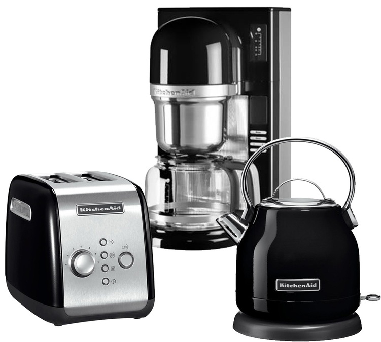 Découvrez la gamme complète du petit déjeuner Noir Onyx de KitchenAid. Ce pack petit-déjeuner se compose d'une cafetière filtre, d'une bouilloire électrique et d'un grille pain. Cette gamme au look retro dispose d'un corps en rêvetement noir brillant pour un effet ultra glossy très élégant. Garantie 2 ans. Livraison Chronopost Offerte + un paquet de café moulu Cafés Lugat offert !