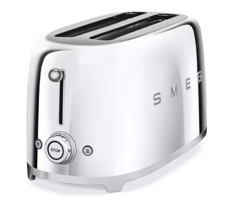 Pour compléter l'élégance de votre cuisine, le grille-pain SMEG chromé se révèle être l'accessoire indispensable. Capable de griller jusqu'à quatre tranches simultanément, il est parfait pour les familles ou pour ceux qui aiment partager un petit-déjeuner convivial. Son design, tout comme celui de la bouilloire, s'inspire d'un style rétro avec des finitions chromées et des commandes rétro-éclairées.