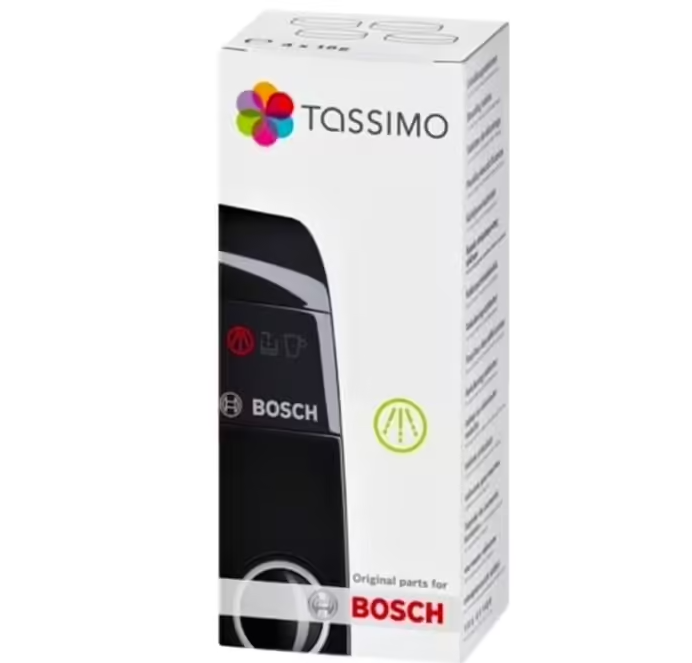 • This is the only official descaler by the brand Bosch Tassimo. 1 box contains 4 tablets of 18g (enough for 2 uses).