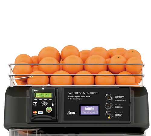Le Zumex Versatile Pro Cashless dispose d'un système de paiement sans contact compatible avec la plupart des méthodes de paiement : carte bancaire, téléphone, carte d'entreprise... Le moyen le plus rapide et le plus simple d'offrir un service de boissons saines à vos clients.