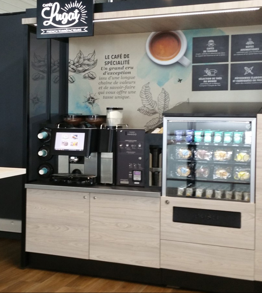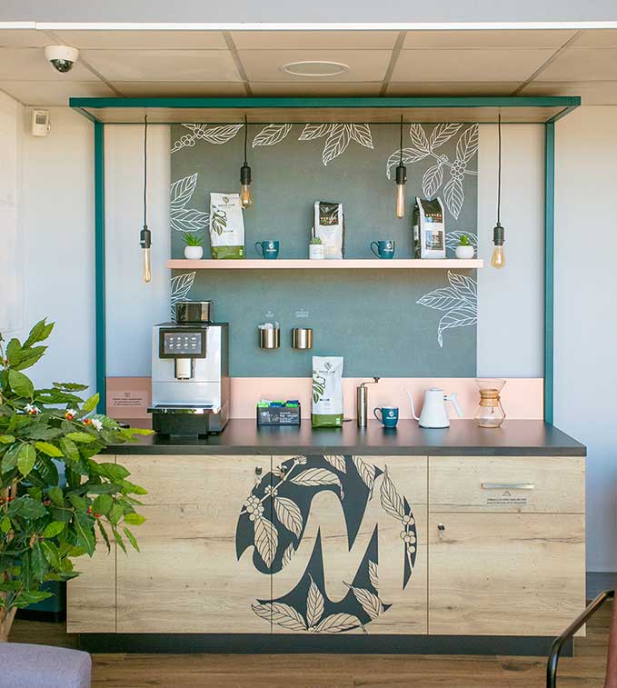 MaxiCoffee a conçu ses corners sur-mesure disposant de différentes options pour permettre une expérience consommateurs unique. Ces corners existent en plusieurs dimensions et peuvent être vendus avec une solutions complète café (machine à café grain automatique, livraison de café tous les mois, accessoires pour le thé…)