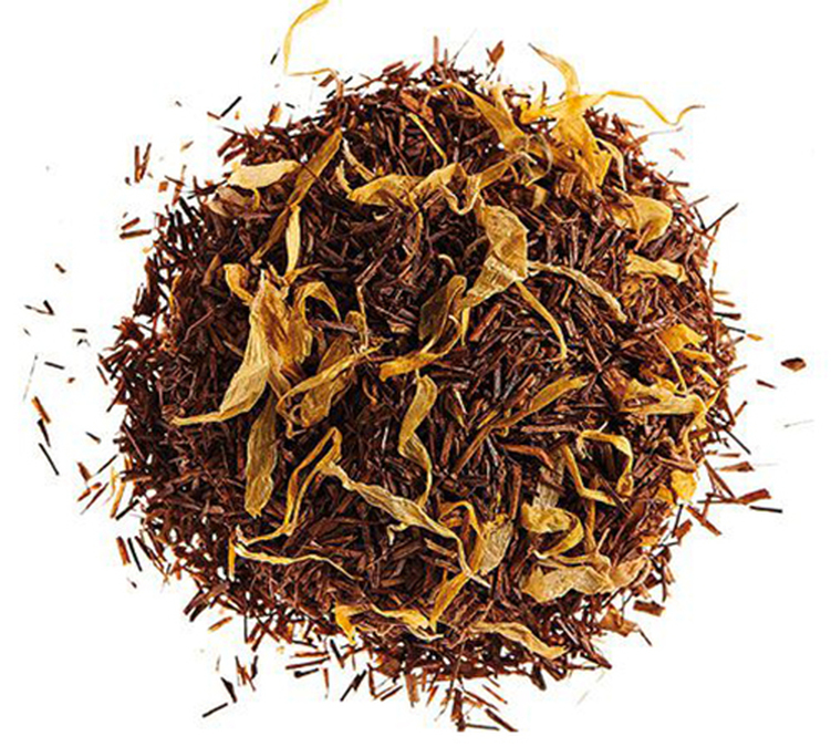 Ingrédients : Rooibos bio, arôme naturel d'orange bio, pétales de souci bio, arôme naturel de fraise. Peut contenir des traces de fruits à coque (amandes, noisettes) de lait et de soja.