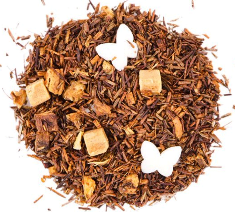 Ingrédients : Rooibos, arômes naturels, morceaux de pomme, morceaux de caramel 5% (lait concentré écrémé, sucre, sirop de glucose, matière grasse butyrique), papillons en sucre (sucre, farine de riz, huile de colza). Peut contenir des traces de fruits à coque (noisettes, amandes) et de soja.