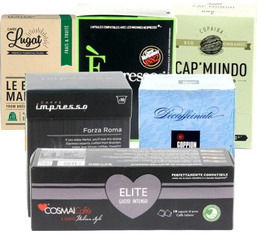 Cette sélection découverte de 60 capsules compatibles Nespresso® contient : 10 capsules Copaiba (Bio) de CapMundo , 10 capsules Espresso Lungo de Caffe Vergnano , 10 capsules Décaféiné de chez Goppion, 10 capsules Le Blend Maison des Cafés Lugat, 10 capsules Elite de Cosmai Caffè, et 10 capsules Forza Roma de Caffè Impresso - Livraison gratuite.