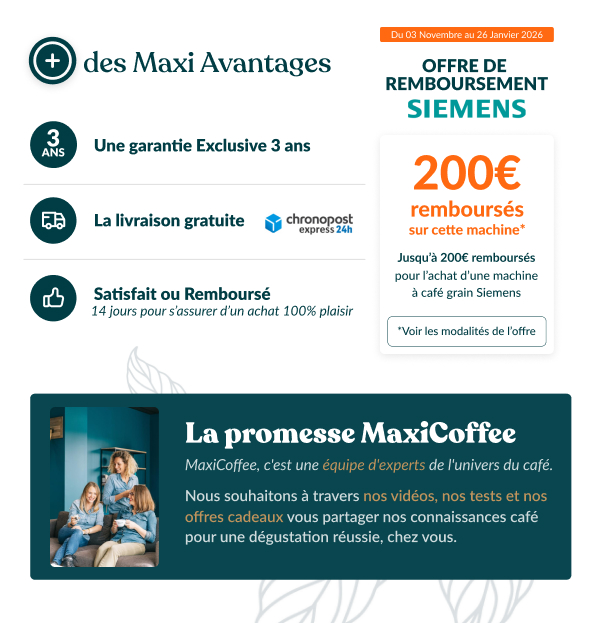 Cette machine automatique Siemens bénéficie d'une garantie confort de 3 ans, disponible exclusivement en France métropolitaine.