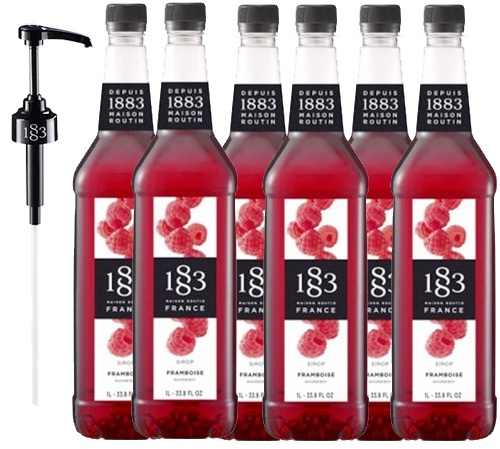 | Sirop Framboise pur professionnel - Bouteille plastique - 6 x 1L + Pompe doseuse 1883 ROUTIN | |