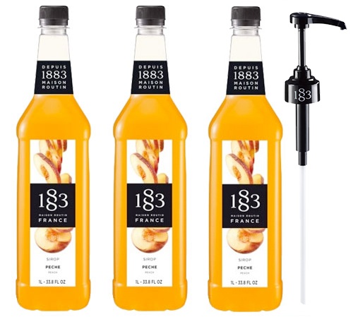 Ce Sirop Routin 1883 Pêche apportera le parfum intense de la pêche à vos boissons préférées. Notes fruitées et douces évoquant le velouté de la pêche. Contenance de 3 x 1L. Bouteille plastique PET. Pompe doseuse pour sirop Routin offerte.