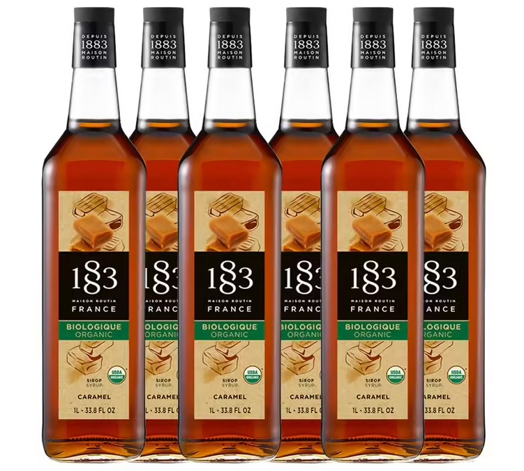 | Lot de 6 sirops 1L Caramel Bio pour professionnel - Bouteille Verre - 1883 ROUTIN | |
