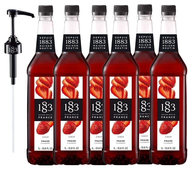 | Lot de 6 Sirops pour professionnel Fraise - Bouteille Plastique - 6x1L + Pompe doseuse 1883 ROUTIN | |